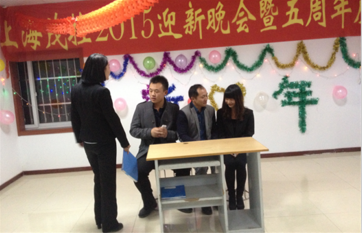 經(jīng)過近一個月緊張的晚會策劃準備和節(jié)目排練,《上海茂控2015迎新晚會暨五周年慶》于2014年12月31日晚上八點如期舉行,地點就選在公司的接待前廳。