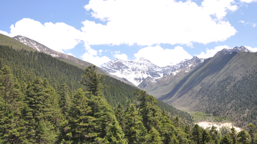 進(jìn)入景區(qū),就象進(jìn)入了一個(gè)童話(huà)世界。一座座雪峰插入云霄,峰頂常年不化的積雪在陽(yáng)光的照耀下銀光閃閃,從溝谷到峰頂,遍布著原始森林,更增添了幾分美麗與神秘。