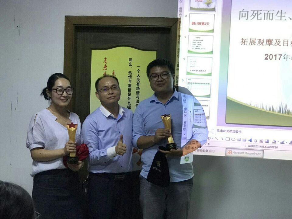 2、本月沖刺目標(biāo)的全體總動員。 會議開始,全體成員觀看了5月6、7日拓展的視頻,回顧視頻中,好多同事看得熱淚盈眶仿佛再次回當(dāng)了當(dāng)時拓展的情況?;仡櫧Y(jié)束后肖總對此次的拓展進(jìn)行了剖析、總結(jié)!并對此次拓展中有勇氣、有責(zé)任心、有擔(dān)當(dāng)、有毅力的四位隊長進(jìn)行了頒獎。